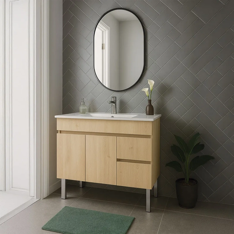 Móvel casa de banho com pés 100 cm cor chene com lavatório – Iris