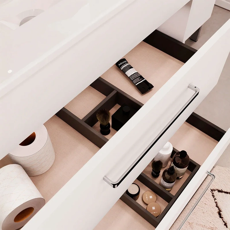 | Tipo de abertura de porta e gaveta | Gavetas com sistema de fecho soft-close |