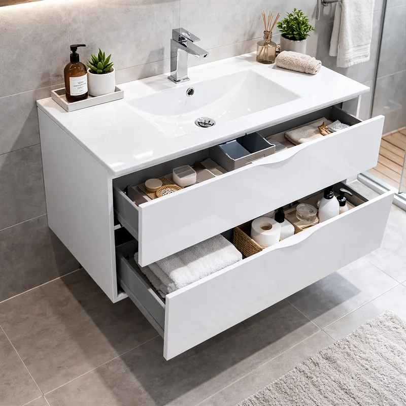 Móvel casa de banho suspenso 100 cm cor branco com lavatório – ANA