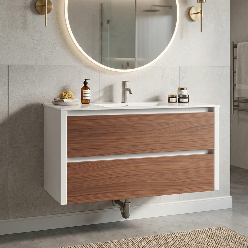 Móvel casa de banho suspenso 80 cm cor branco/nogal com lavatório – LONDRES